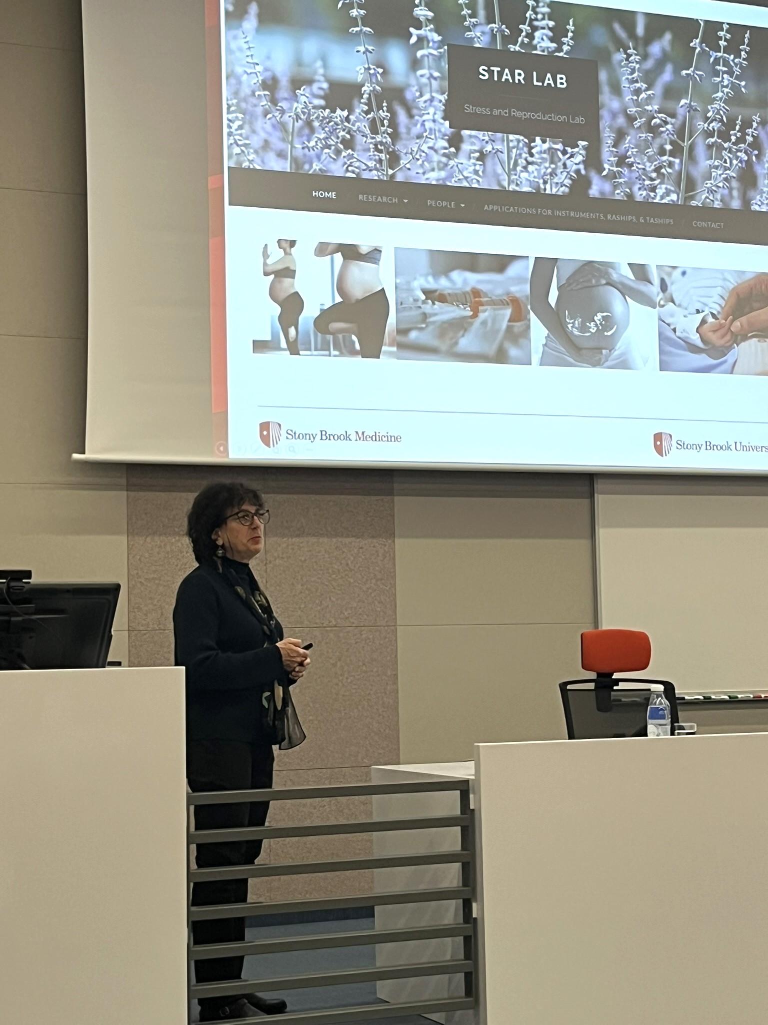Pozvání na tuto akci přijala prof. Marci Lobel ze Stony Brook University. Ve své přednášce představila výsledky více než třiceti let výzkumu zaměřeného na stres v těhotenství a jeho dopady na zdraví žen i průběh těhotenství. Ve svém vystoupení ukázala, jak komplexní a často opomíjené toto téma je, a zdůraznila jeho význam pro současný výzkum i klinickou praxi.